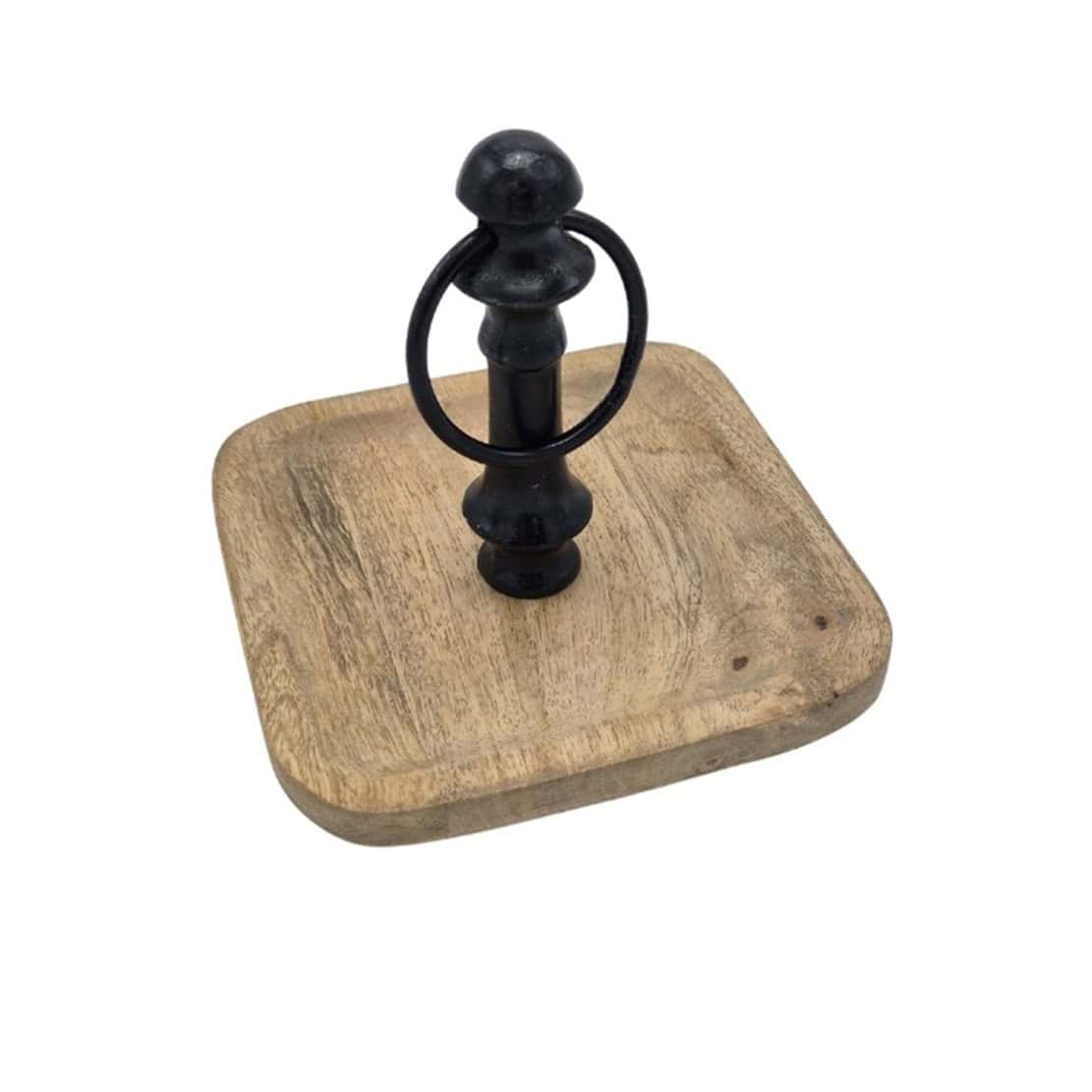 Die kompakte Etagere verbindet rustikalen Charme mit modernem Industrie-Design und ist ein vielseitiges Highlight für jede Einrichtung. Das Zusammenspiel aus natürlichem Holz und robustem, schwarz lackiertem Metall schafft eine warme und zugleich klare Optik. Mit ihren Maßen von 15 x 14,5 x 15 cm eignet sich die 1-lagige Ablage perfekt, um kleine Schätze wie Bernsteinwürfel, Duftkerzen oder andere Dekoration stilvoll zu präsentieren.